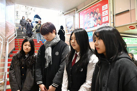 東京都新宿区のJR新大久保駅で2001年、線路に転落した日本人男性を助けようとして犠牲になった韓国人留学生の故李秀賢さんの事故から25年となるのを前に、同駅で23日、韓国の高校生らが冥福を祈った。 【時事通信社】