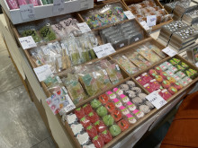 「をかし ひつじや」は、福岡の宇美八幡宮(宇美町)内にある和菓子店「季(とき)のせ」の姉妹店として、2021年3月に福岡市南区大橋にオープンした和菓子と駄菓子の店。現在、大橋本店と「東京仙川店」(東京都調布市)の2店舗を展開している。博多駅構内での出店は今回が初めて。吹き寄せ、ようかん、コンペイトー、きな粉棒など約20種類の菓子を販売する。