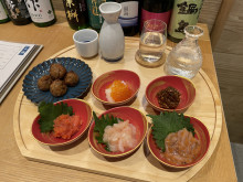 メニューは、「鯛(たい)の胡麻(ごま)ダレだし茶漬け御膳」(1,800円)や、「銀鱈(だら)の西京焼きと鯛の胡麻ダレ御膳」(2,680円)、「銀鮭の塩麹(こうじ)焼きと漬け鮪(まぐろ)の御膳」(2,460円)、「鶏の九州麦味噌(みそ)焼きと漬け鮪の御膳」(2,160円)、「鮭といくらの羽釜めし御膳」(2,180円)などをそろえる。おつまみメニューとして「薩摩揚げタコ焼き天」「北海道産いかの塩辛」(以上500円)なども用意。