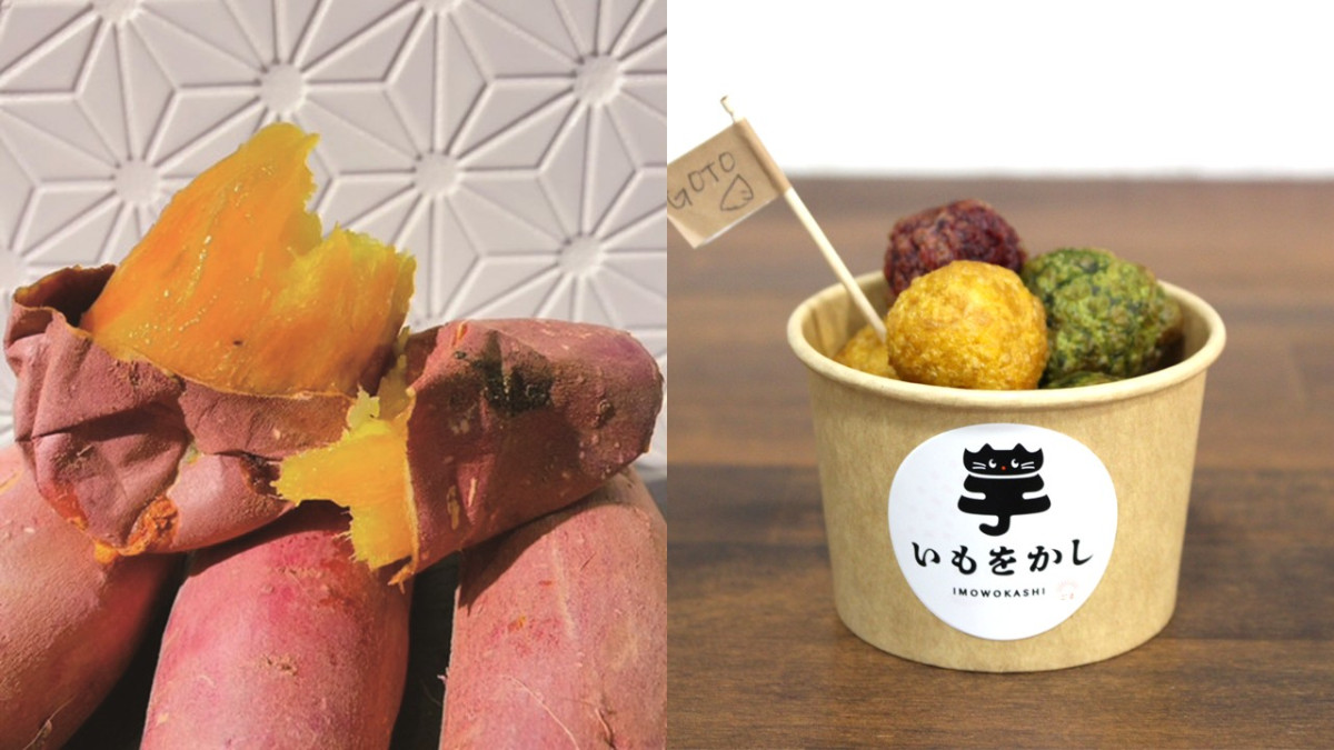 サツマイモフェスタで販売する商品。(左)「神戸芋や志のもと」の「蜜はるか」、(右)「長崎五島ごと」の「ころころ揚げかんころ餅」