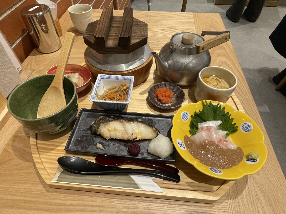 「銀しゃりとだし茶漬け 釜のうさぎ JR博多シティ店」で提供する「銀鱈の西京焼きと鯛の胡麻ダレ御膳」