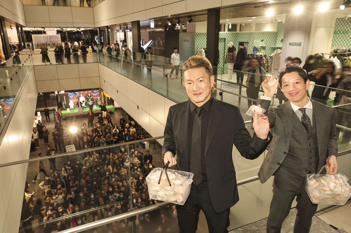 「ワン・フクオカ・ビルディング」で行われた餅まきの様子(提供=博多座)