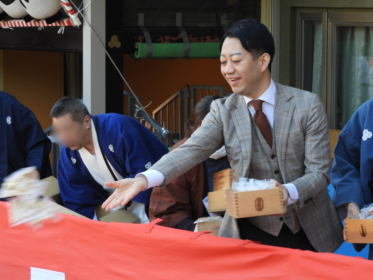 中村獅童さん・中村壱太郎さんらが「鬼は外」 櫛田神社で豆まき神事