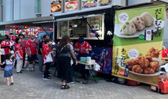 かねてより久原醤油では、流通店舗だけでなく「くばら」ブランドと生活者との接点をつくるべく、イベントや催事を行ってまいりました。2025年には、みずほPayPayドーム福岡にて「あごだしのくばら」キッチンカーを出店し、その名の通り「あご=トビウオ」のおいしさを活かしたメニューをご提供することで、ご来場の方々より多くのお喜びの声や商品へのアイデアをいただくことができました。