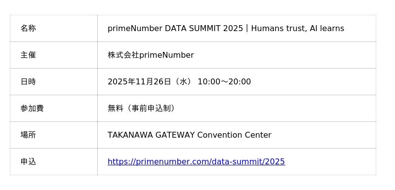 「primeNumber DATA SUMMIT 2025」は、“ヒトにとっても、AIにとっても価値あるデータ”をテーマに掲げ、データ活用の本質を深く掘り下げるイベントです。