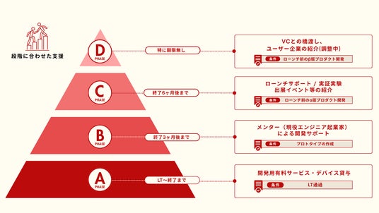 アイデア段階から実装・リリース・事業化まで、エンジニアが一歩ずつ前進できるよう、開発フェーズに合わせて支援を行います。