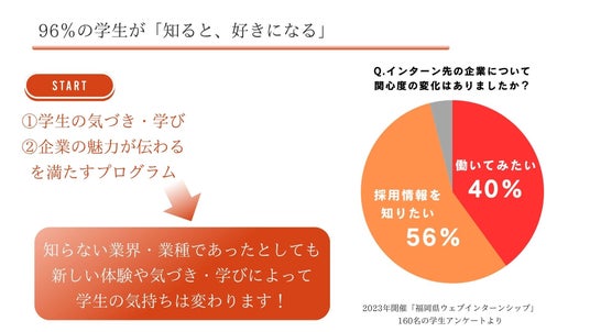 96%の学生が「知ると、好きになる」当協議会が過去に開催したインターンシッププログラムでも、学生は知らない企業であっても、関わりを持つことで働くことへの関心の変化が起きていました。