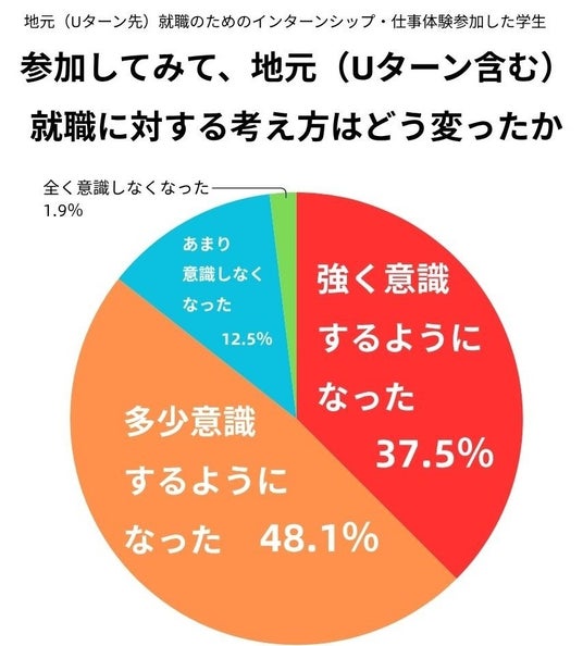 地元企業は”関わると”意識するこのように、「志望する企業がない」と判断している学生も、地元企業と関わる中で興味が生まれ、新卒での就職や、将来のUターン・Iターンでの就職に繋がる可能性が高いことが分かります。