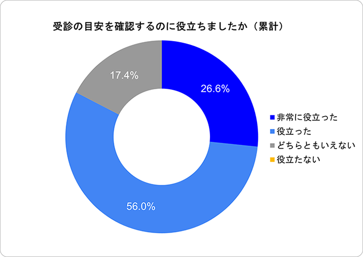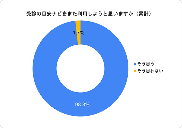 - 「役に立った」の回答は82.6%、「受診の目安ナビをまた使いたい」と回答した利用者は98.3%