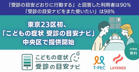 株式会社レイヤード(本社:福岡市博多区、代表取締役社長:毛塚 牧人)は、ティーペック株式会社(本社:東京都台東区、代表取締役社長兼CEO:鼠家 和彦)と共同開発した「こどもの症状 受診の目安ナビ」を、2026年1月より東京都中央区で提供を開始しました。本サービスは、東京23区での初導入となります。