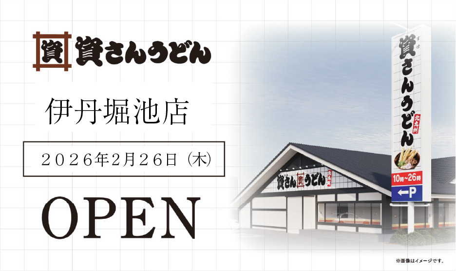 「資さんうどん伊丹堀池店」2月26日(木)OPEN!
