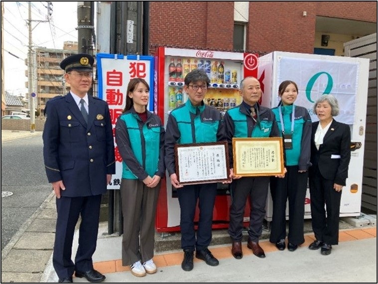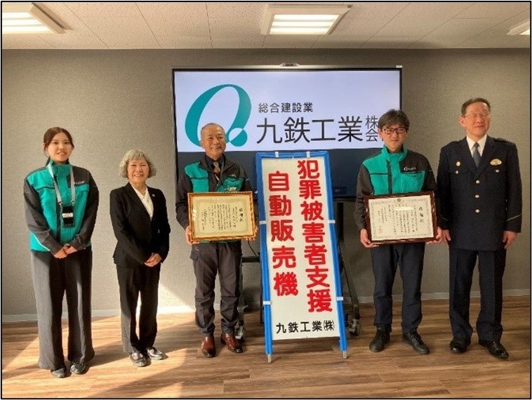 2021 年1月以降、公共工事の現場作業所など19 箇所(24 台)に設置してまいりました。このたび、福岡支店への同自販機設置に伴い、2026 年2月4日に福岡県犯罪被害者支援センターおよび福岡県南警察署より感謝状を授与されました。当社は今後も、自販機の設置を通じて犯罪被害者支援の重要性を周知し、安全・安心な社会づくりに寄与していきます。