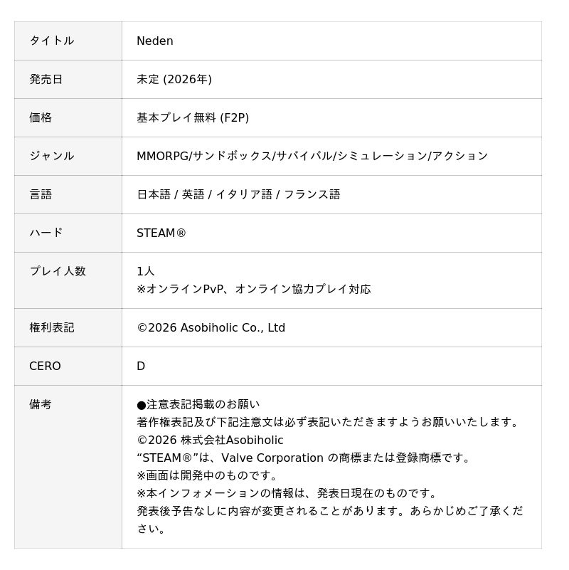 株式会社Asobiholic(本社: 福岡県福岡市、CEO: Bo Walter)は、基本プレイ無料MMO『Neden』のデモ版を近日公開いたします。本デモ版では、自分好みの画像を街の看板に掲出できる「画像アップロード機能」をいち早く体験可能です。