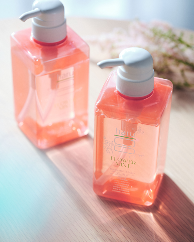 kurokamiスカルプ(haruシャンプー)は、地肌と髪にやさしい10の無添加(*2)を徹底的に追求した、100%天然由来のノンシリコンシャンプーです。同シリーズのkurokamiスカルプ(スプリングレシピ)は、そのkurokamiスカルプの機能はそのままに、さらに4つのアプローチをプラスした春限定のアイテムです。香りは、ミントがすっきりと寄り添う、甘さと深みのある花の香り。ふわっと軽やかな仕上がりが、皆様のバスタイムを春の心地よい「空気感」でやさしく包み込みます。