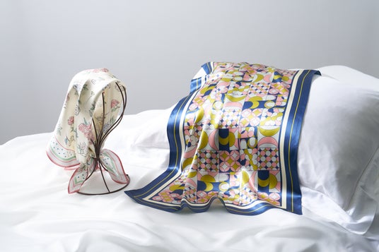 夜は枕カバーとして“眠りながらケア”を。昼はスカーフとして装いに取り入れることも可能です。美しさを、夜から日中へとつなぐ一枚です。