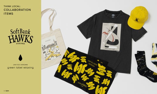 株式会社ユナイテッドアローズ(代表取締役 社長執行役員 CEO:松崎 善則、本社所在地:東京都渋谷区)が展開する「ユナイテッドアローズ グリーンレーベル リラクシング(以下、グリーンレーベル)」は、プロ野球球団「福岡ソフトバンクホークス(以下、ホークス)」とのコラボレーションアイテムを、 2026年4月24日(金)に発売します。グリーンレーベルの地元応援プロジェクト「THINK LOCAL」の取り組みとして、福岡を拠点に活動するアーティスト・グラフィックデザイナーのtaiki kishimoto氏がホークスの象徴的なモチーフをもとにデザインしたTシャツ、キャップ、トートバッグ、ソックス、手ぬぐいを展開します。