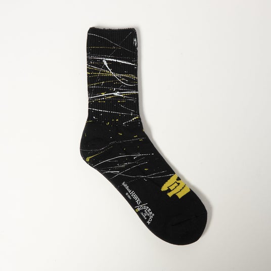 「ROSTER SOX」のボディをベースに、ホークスのチームカラーを想起させるペイントデザインをジャガード縫込みで表現しました。足元からホークスらしさを楽しめる一足です。