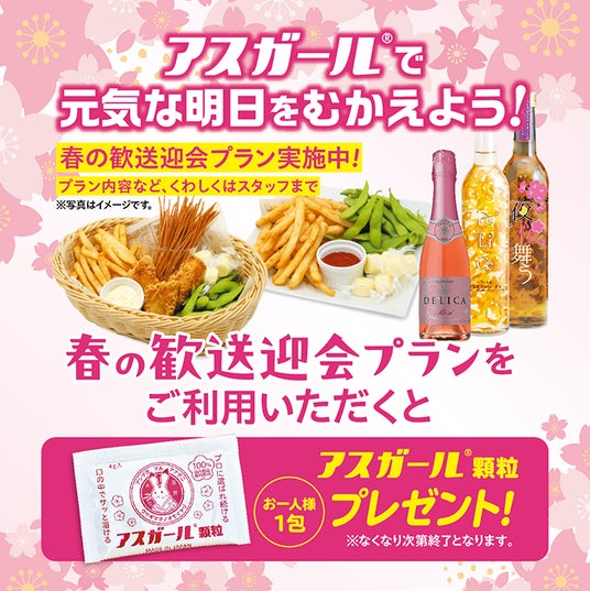 さらに、春の歓迎会プラン利用者には、アスガール顆粒を1人1包プレゼントするキャンペーンも実施(※数量限定)。