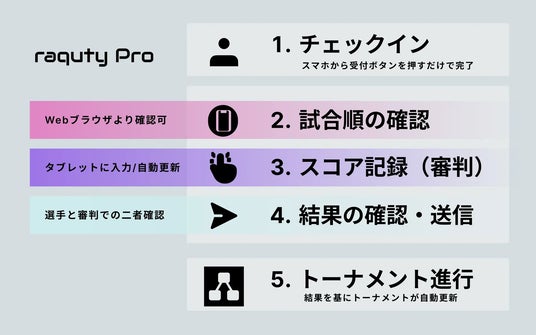 本大会では、エントリーおよび参加料の決済プラットフォームとして「raquty Base(ラクティーベース)」を採用し、大会当日の進行管理には大会運営自動化サービス「raquty Pro(ラクティープロ)」を導入。