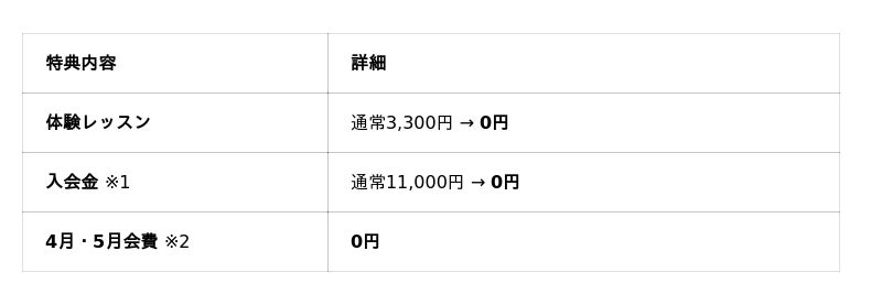 (※1:体験当日に入会された方への特典、※2:パーソナルコースは除く)